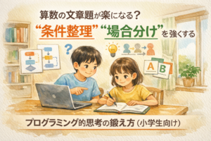 小学生向けの導入は、計算力よりも「順番に考える」「試して直す」が中心です。もちろん学年が上がると数学の考え方が役立つ場面も増えますが、最初から得意である必要はありません。